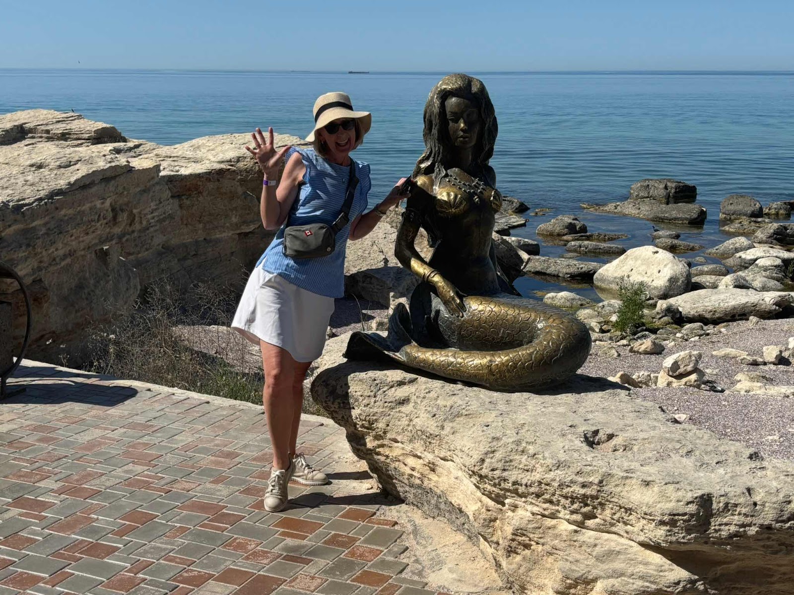 It was 10:30AM by the time we hopped into a Yandex and got a lift to the start of the wonderful boardwalk along Aktau's coastline. The sun was a-blaze as we started our 3KM walk in 38C. Wherever we could, we sought shade from the tall limestone cliffs. Where the cliffs meet the water, sun-bathers and swimmers perched on large boulders at the water's edge, as it is more of a boulder beach area than sandy.