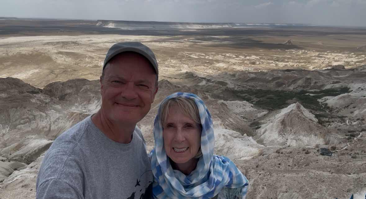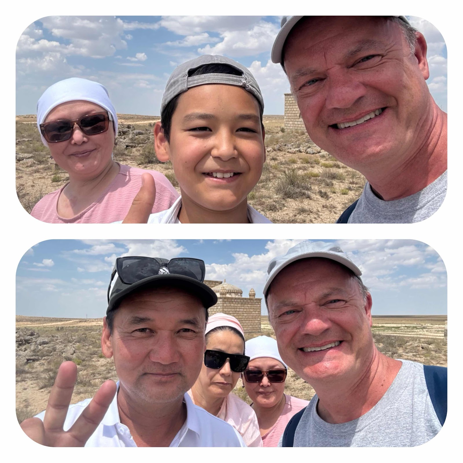 Our main reason for wanting to include Aktau on our itinerary was to be able to visit the Mangystau desert which, from photos, reminded us of Utah. Unfortunately, as we prepared for the trip back home in Canada, we were unable to find a way to book such a day-trip. When we arrived at the Holiday Inn just before midnight on Friday, the woman who checked us in had great English and was incredibly polite. We realized the safe in our room wasn't working, so she came to our room to reset it. When she finished that, she asked if we had plans to see any sights while we were in Aktau. I explained the trouble in trying to locate a tour to the desert and indicated that was high on my priority list for the next day. She said, "My mom is visiting, and I have hired a driver to take us to Beket-Ata on Sunday. We have space in the vehicle, would you like to join us?" We were in-like-flin, as the saying goes!