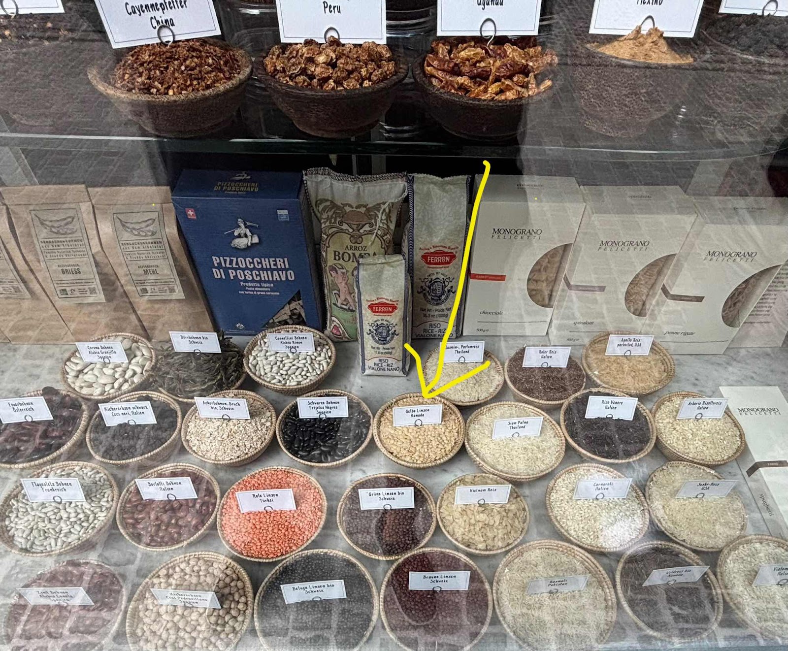 The arrow points to speciality lentils from Canada! I didn’t even know Canada grew lentils!