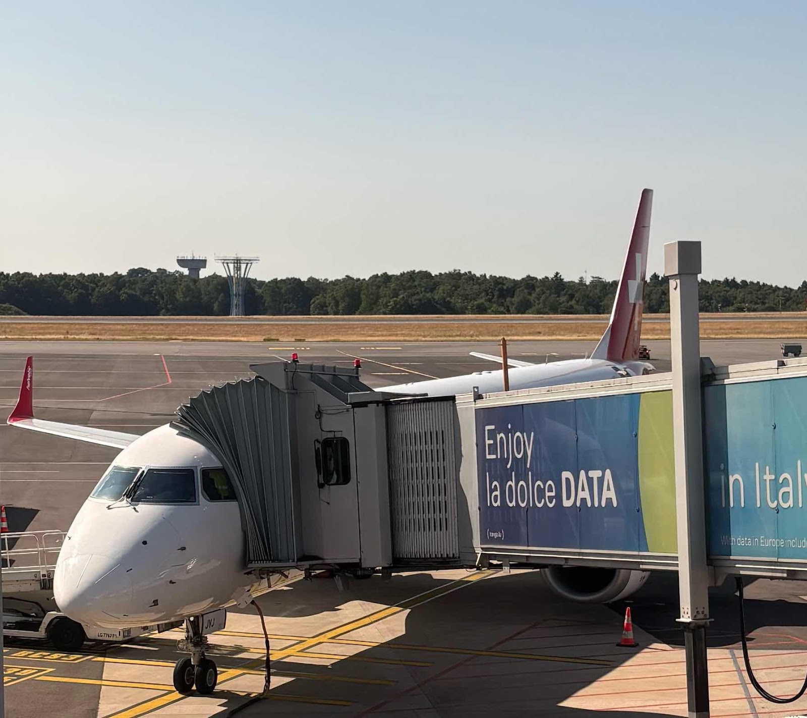 The nice thing about staying at an airport hotel is that you can sleep in a little longer on flight day! Instead of breakfast in the hotel, we checked out and went right next door to the terminal building, where we checked in for our flight and then had a great breakfast in the Luxair Lounge. Today is a long flying day: three flights over a 17-hour period. The first sector was from Luxembourg to Zurich, aboard a Swissair subsidiary named Helvetic Airways. Once in Zurich, the focus of this blog entry came to life.