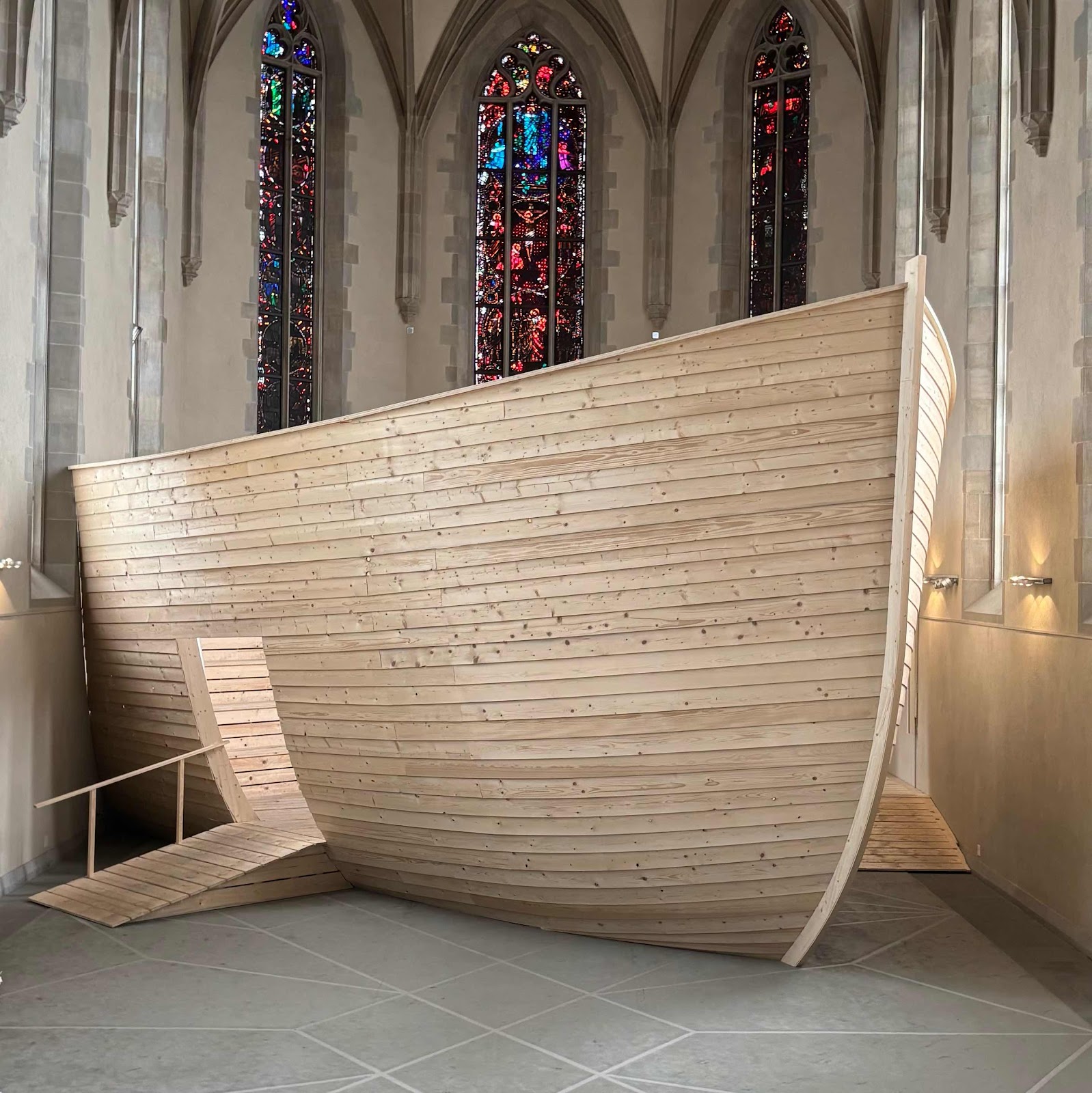 This is the quant and small Wasser Kirche (‘water church’). It is no longer used as an active church, and this Ark 2.0 now fills its interior. The ark contains a small theatre.